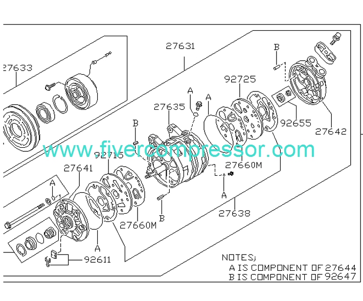 Remarks: COMPRESSOR ASSY-COOLER. Applied Model: FED.S.VE30DE +CAL.S.VE30DE; Specification: F/AIR CON,HFC134A; (07.92 - 01.93); Replaced: 92600-7E001