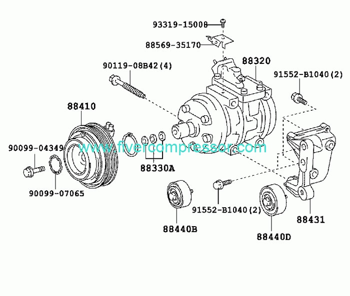 Toyota Hiace KDH202 2005- Compressor Assy Cooler 88320-2F050 88320-2F040